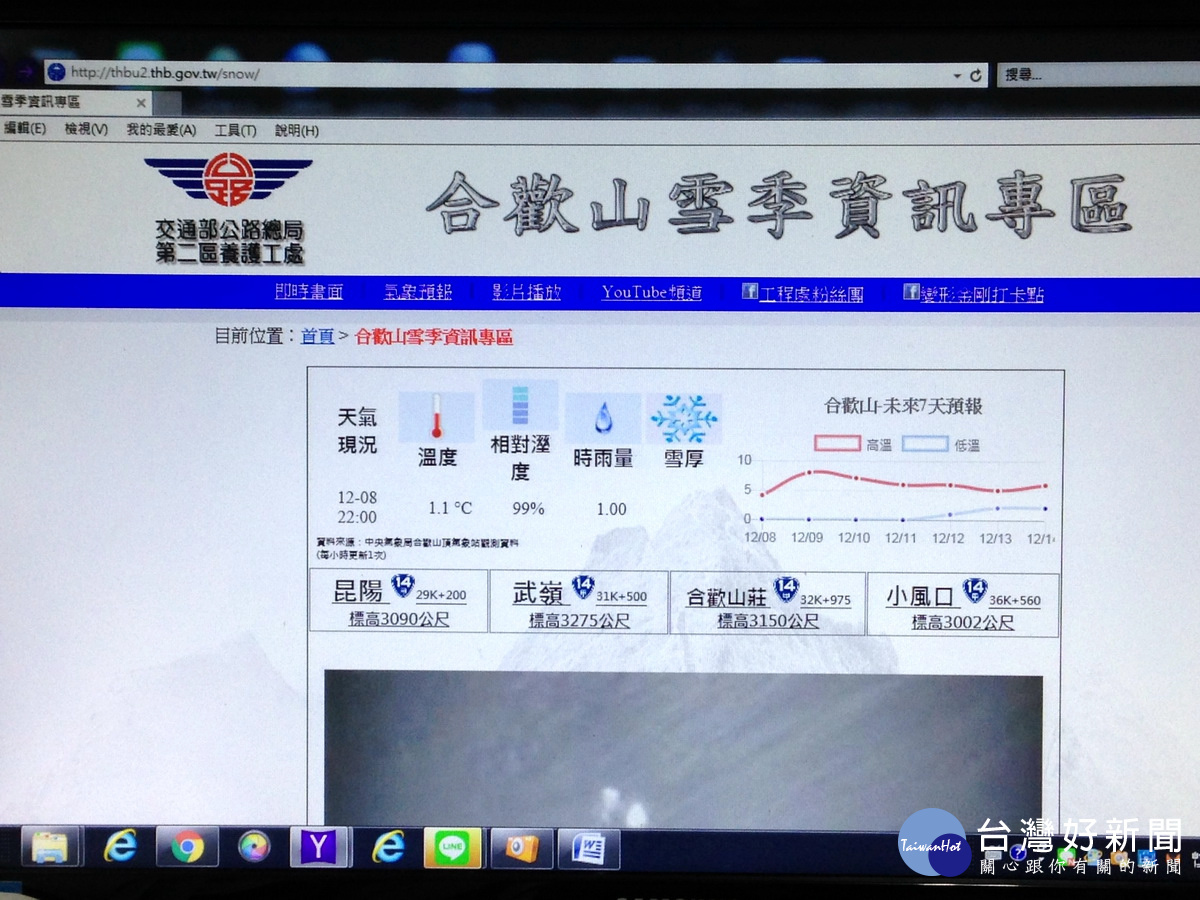 公路總局二工處在網站建置合歡山雪季資訊專區,提供民眾賞雪熱點CCTV即時影像,便利遊客得知合歡山雪況。