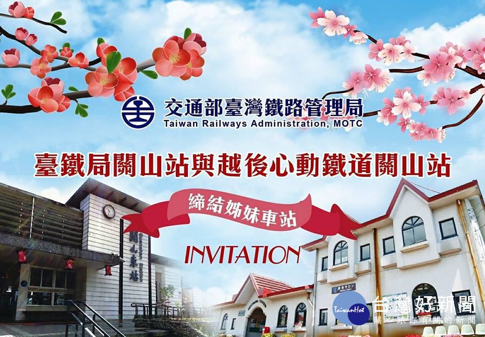 近年台灣與日本為推展雙邊鐵道觀光,推出了許多行銷活動。過往日本京濱急行電鐵曾出現「台鐵版藍白普通車」塗裝,台鐵也對應曾為阿福號列車,換上期間限定的「京急800型電車紅色塗裝」;東武鐵道也推出過「台鐵普悠瑪塗裝版」的兩毛號列車,台鐵也對應推出金色塗裝的「兩毛號日光詣SPACIA版」自強號。如今台日鐵道合作又添一樁,台鐵今(8)日表示,他們與日本越後心動鐵道合作,將台灣台東的關山站與日本的越後心動鐵道關山站,締結為姊妹車站。