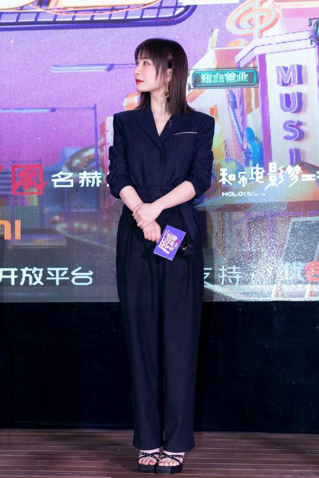 吳昕這氣場絕了,條紋西裝配黑色長褲