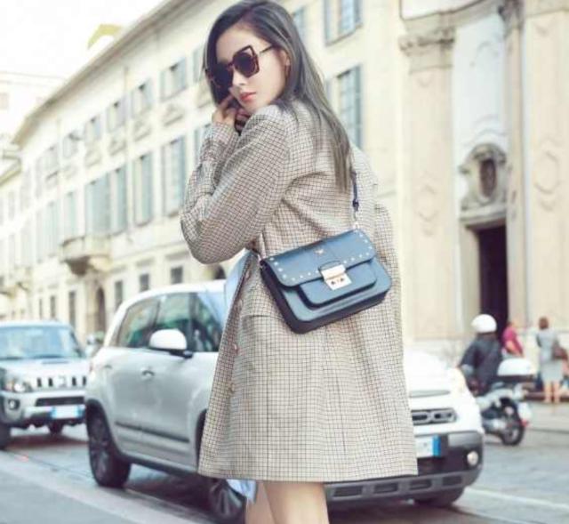她就是張天愛,上穿一件格子外套,滿滿英倫風,優雅大方。上衣V領的設計將張天愛迷人的頸部線條展露,很有女人魅力!一條黑色的綁帶腰帶,彰顯獨特的格調。