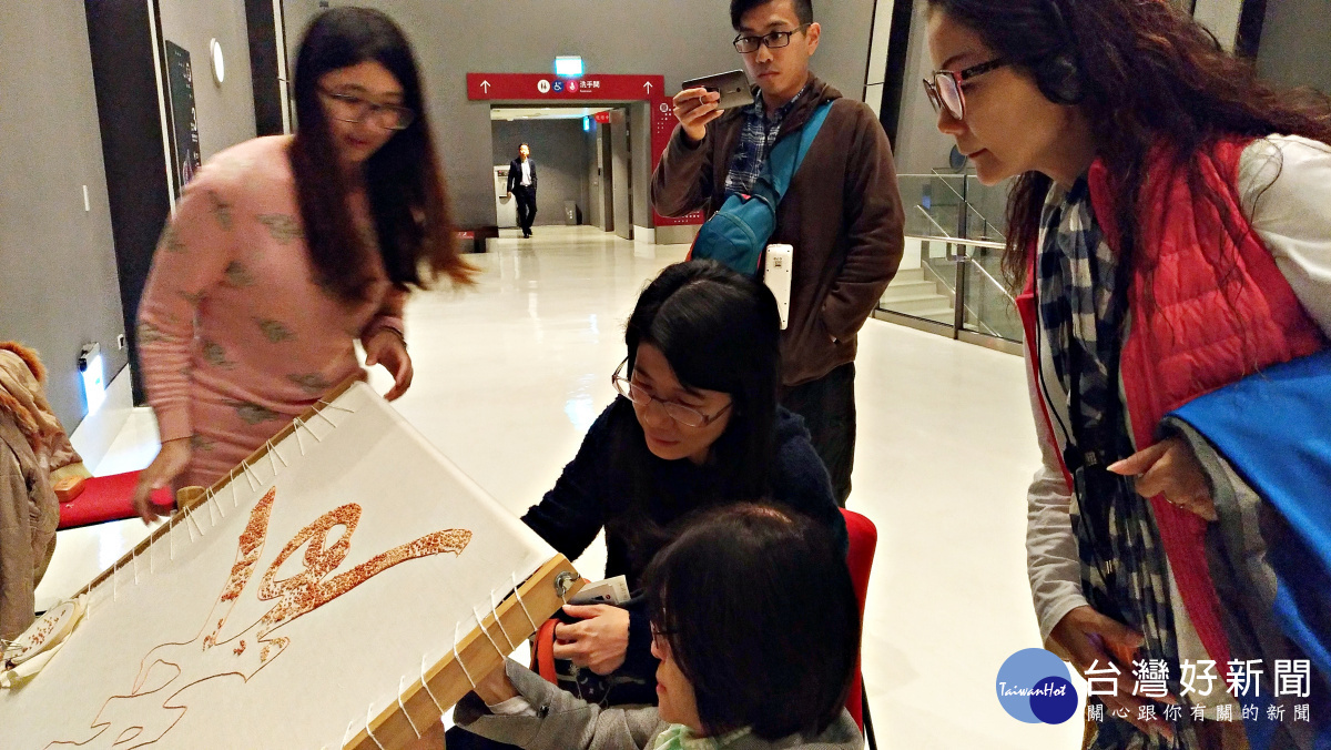 集氣集力,大吉大利!故宮南院配合正在展出的「天孫機杼— 明清緙繡精萃」特展,即日起至107年1月28日在S304織品文化展廳外推出大字「春」字吉利繡(結粒繡)集體創作活動, 邀請民眾前來體驗簡單的刺繡工藝。