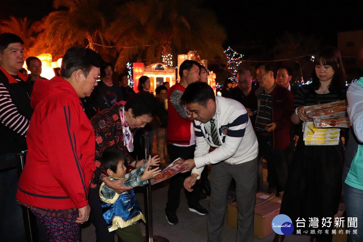 集集鎮長陳紀衡發放狗年提燈給小朋友。