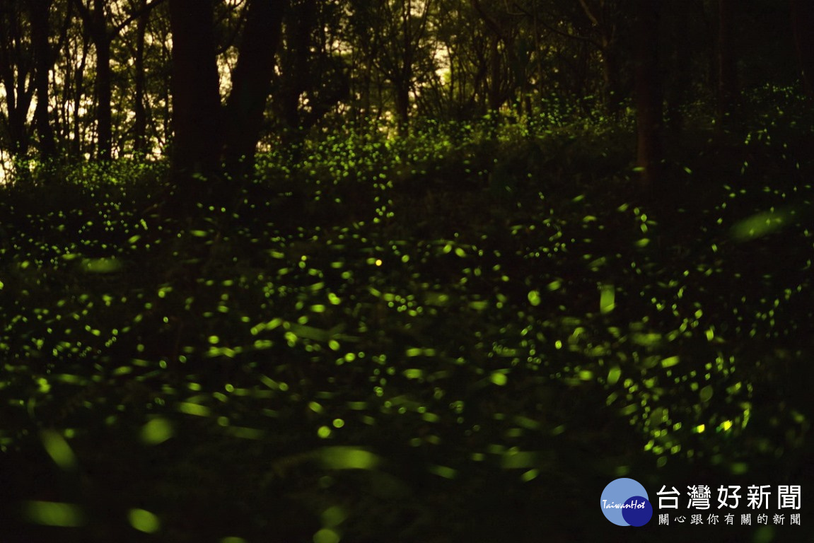 晴天的夜晚,東勢林場內已可觀賞大量螢火蟲飛舞的景觀。(圖/東勢林場提供)