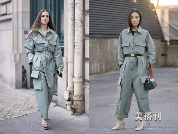 首先是霧霾綠連體褲,今年很多時髦精都喜歡霧霾綠色系的連體褲,尤其喜歡工裝版型的連體褲,工裝版型利落洒脫,輕鬆就能穿出大女人氣場。時髦精們穿霧霾綠工裝連體褲還不忘搭配一條腰帶,帥氣又顯高。