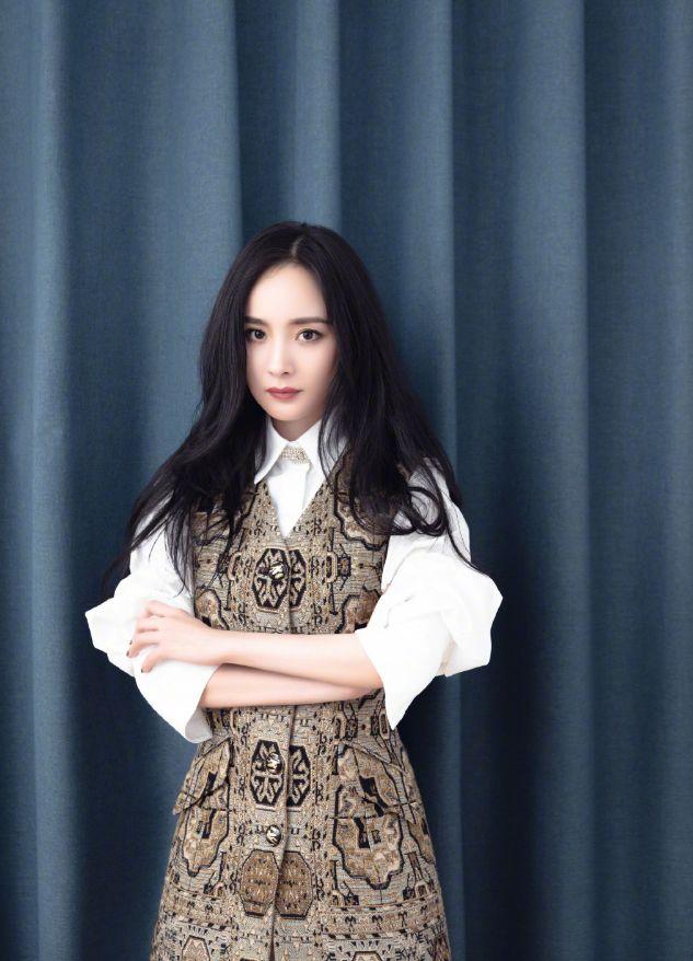 像楊冪最近的這身綜藝造型,解鎖新造型讓人眼前一亮,一頭黑色長捲髮披在肩頭,這發量和發質還是很讓人羡慕的,中分也很好的掩蓋住她的髮際線短板,這次的妝容超級精緻有質感,看着還挺御姐范兒的,氣質十足。