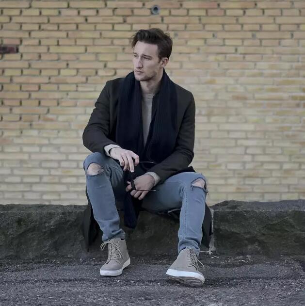 很多男生都喜歡用牛仔褲+T恤的穿法搭配。如果你想營造一種牛仔風,那我推薦搭配一條破洞牛仔褲,再加上高幫綁帶鞋,瞬間展露出你的個性。再搭上一件風衣,優雅自然。帥氣難擋!