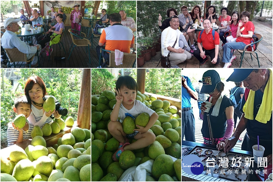 8日上午,遊園人潮再度湧現,包括「桃園市中壢區金嗓歌友會」會員一行128人,使得園區益顯熱鬧。到「擁抱玉泉溪」文化園區暢遊,不僅享有150元的優惠票價,飽嚐文旦柚、品鑑玉石、遊賞水岸美景,憑門票還可免費兌換特製冰沙或飲品,真可謂吃、喝、玩、樂一次滿足。