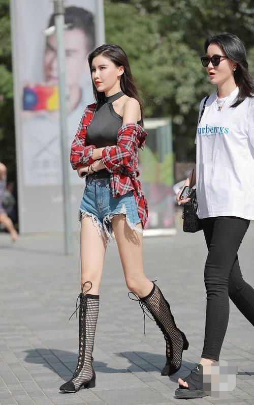 看上去非常破敗的一條牛仔褲,實際上呈現的都是比較協調的性感風尚。吊須和半破洞設計的風格,是現如今很多年齡段的小姐姐都比較喜歡的風格,因為不僅能夠彰顯休閑風尚,還能夠用本身的短款設計,來增加小姐姐性感的風姿。長筒靴非常有特色,網格的設計非常細密,雖然有粗獷的外表,但實際上設計還是非常細膩的。