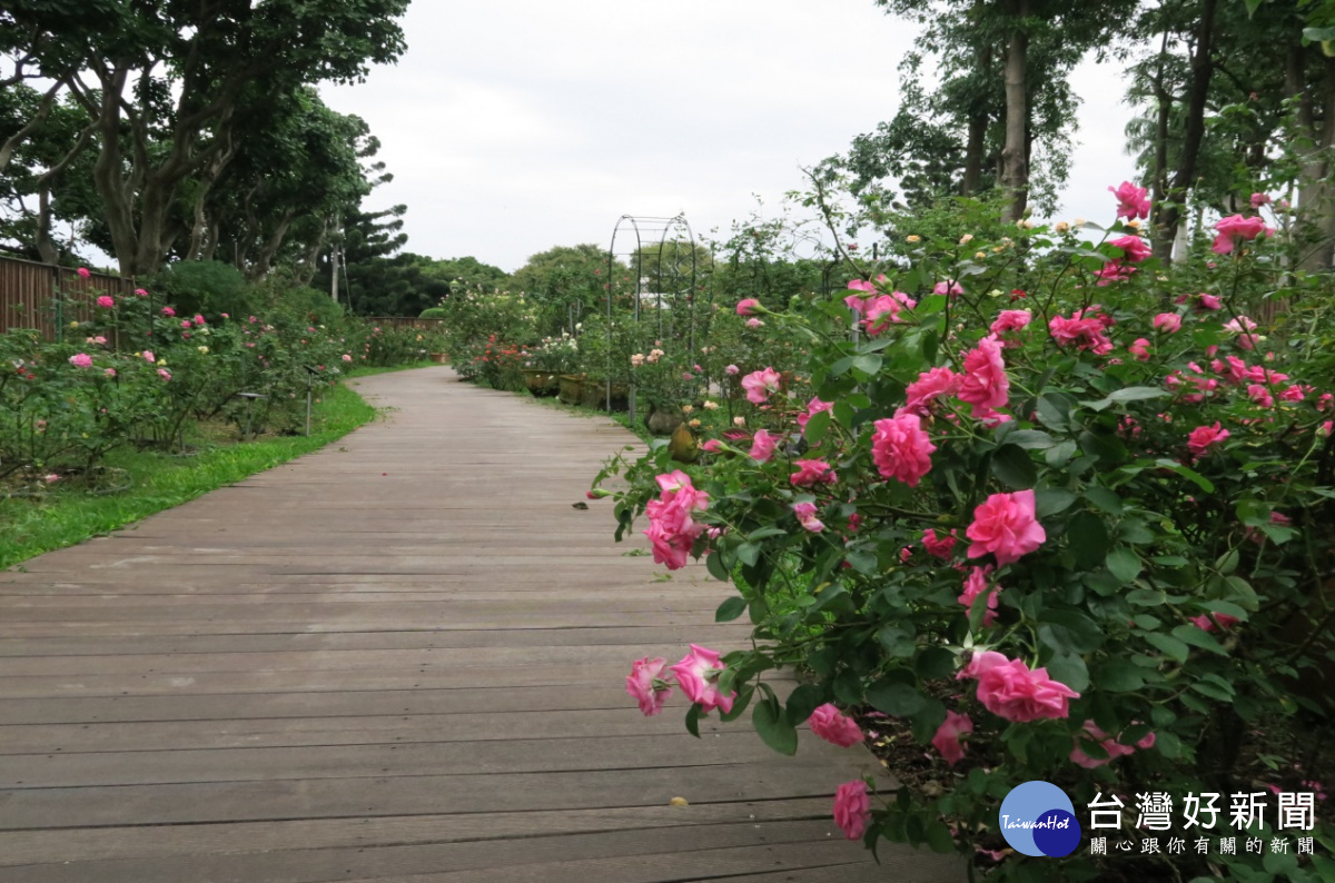 現代玫瑰園區內新設置寬闊的木棧道,讓民眾能更便利的在花叢間賞玩、拍攝。