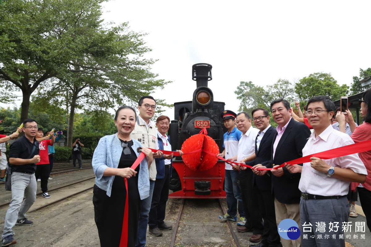 耗資950萬元修復、編號650的台糖蒸汽火車,11日在嘉義縣蒜頭糖廠復駛,捐贈人台日鐵道交流促進協會會長伊藤一已應邀見證這歷史上的一刻,當蒸汽火車鳴笛出發時,夾帶煤渣的蒸氣噴了縣長張花冠一臉的黑水,她笑說這是免費的「煙燻妝水」,惹得大家哈哈大笑。