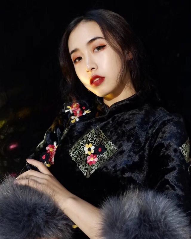 首先看材質,絲絨的材質厚重但不庸俗,恰恰相反的是有一種華麗高貴的大氣。無論是將頭髮輕輕挽起,在後面梳一個好看的髮髻,還是將長發披肩,都美麗優雅,無論哪一種髮型的選擇,這身旗袍都能很好的駕馭,穿出不一樣的味道。這味道啊,如久釀的葡萄酒一般,令女人沉醉男人着迷。絲絨地質采,厚重但不偏於庸俗,畫一個精緻的妝容,便能很好的搭配出女人的韻味。像軍閥少爺的金絲雀,也像性格傲嬌的千金小姐。